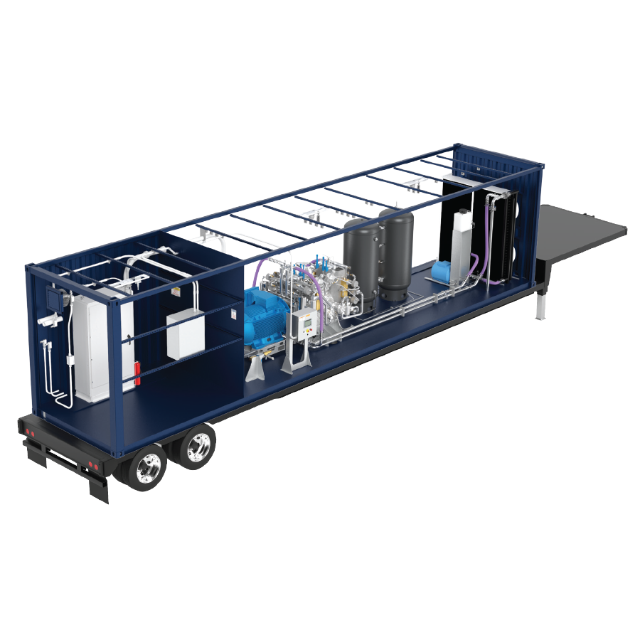 - The system is built in a 40-foot custom built ISO container with integrated gas-tight electrical room that houses the VFD.