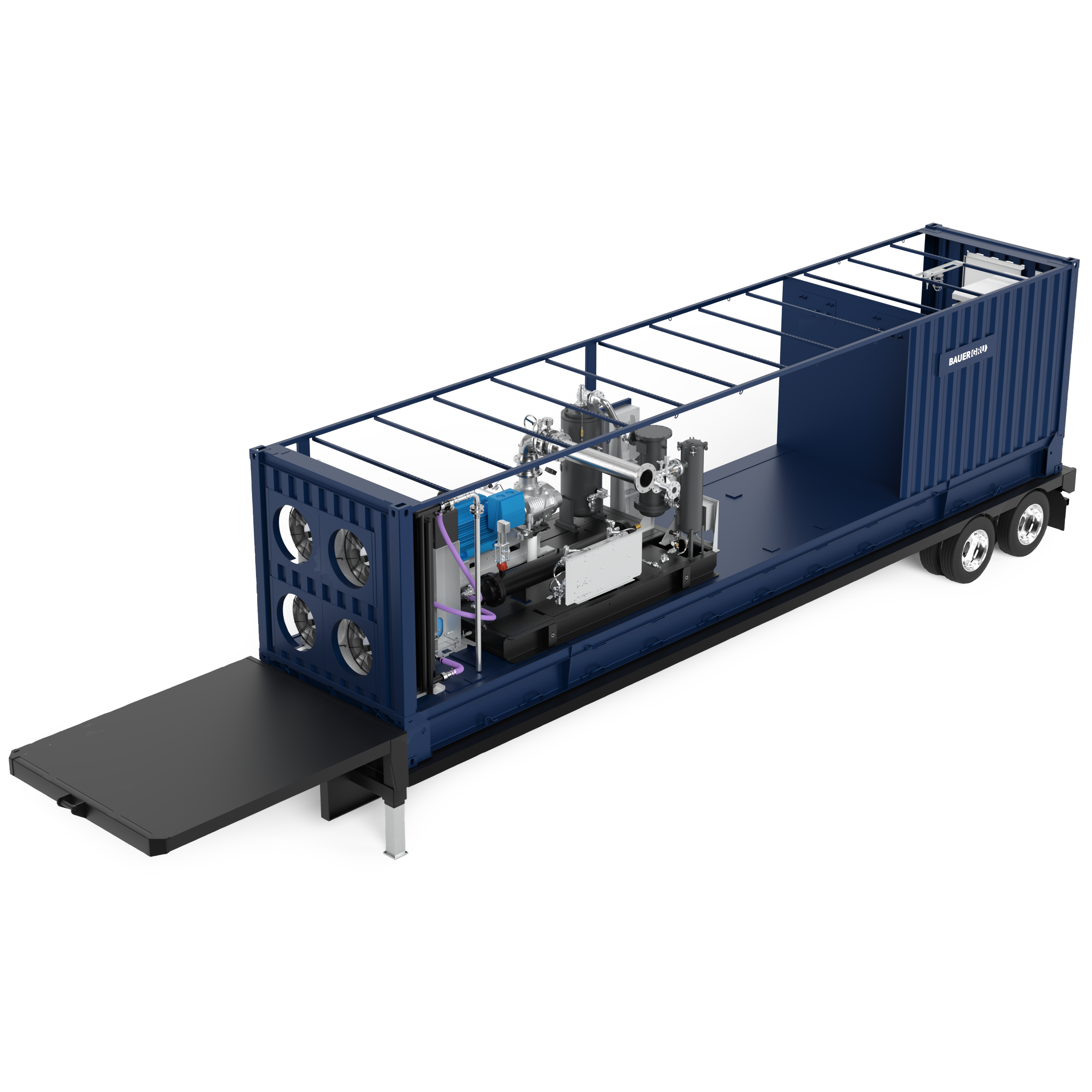 - The BAUER GRU® 42 compressor system is built for mobility and can be mounted and operated on top of a standard 40-foot trailer chassis.