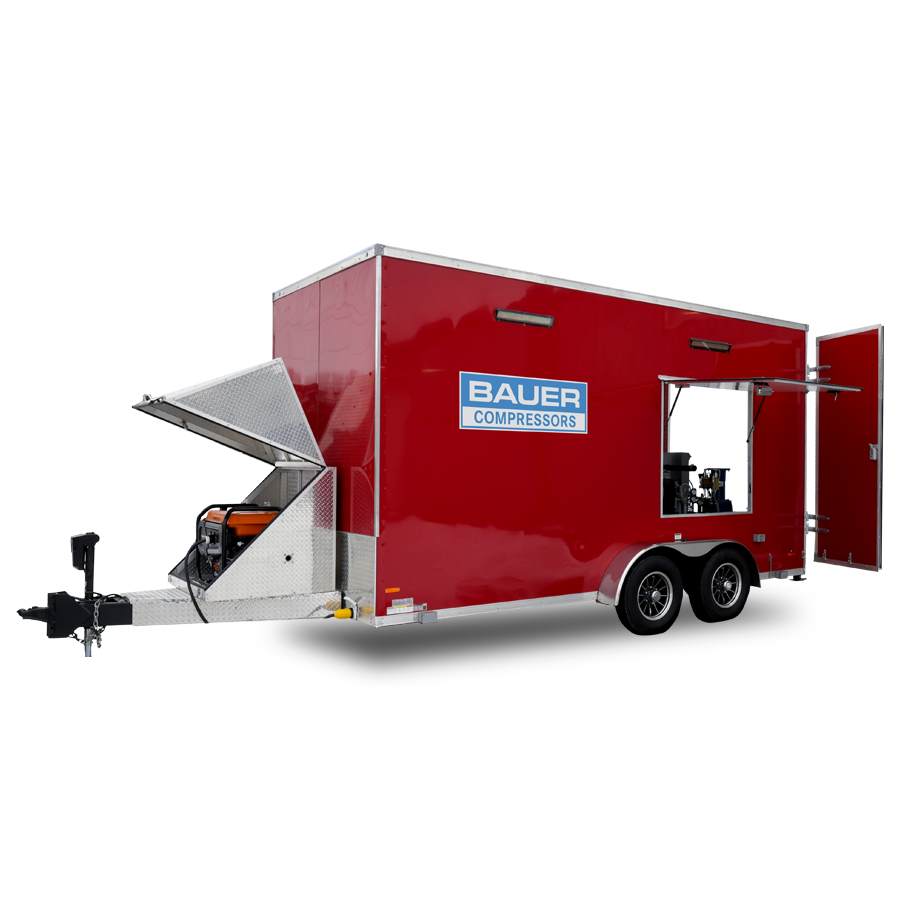 BAUER Trailers are multi-stage compressors on wheels! We start with a chassis and enclosure assembly, engineered, designed, and built by BAUER. We ensure a robust foundation, built for the stresses and strains of the Fire Service, rather than a lightweight trailer built in support of a multitude of commercial applications. Each system includes a two-position SCBA containment fill station, fill control panel, two to four (2-4) 6000 PSIG air cylinders, and more.