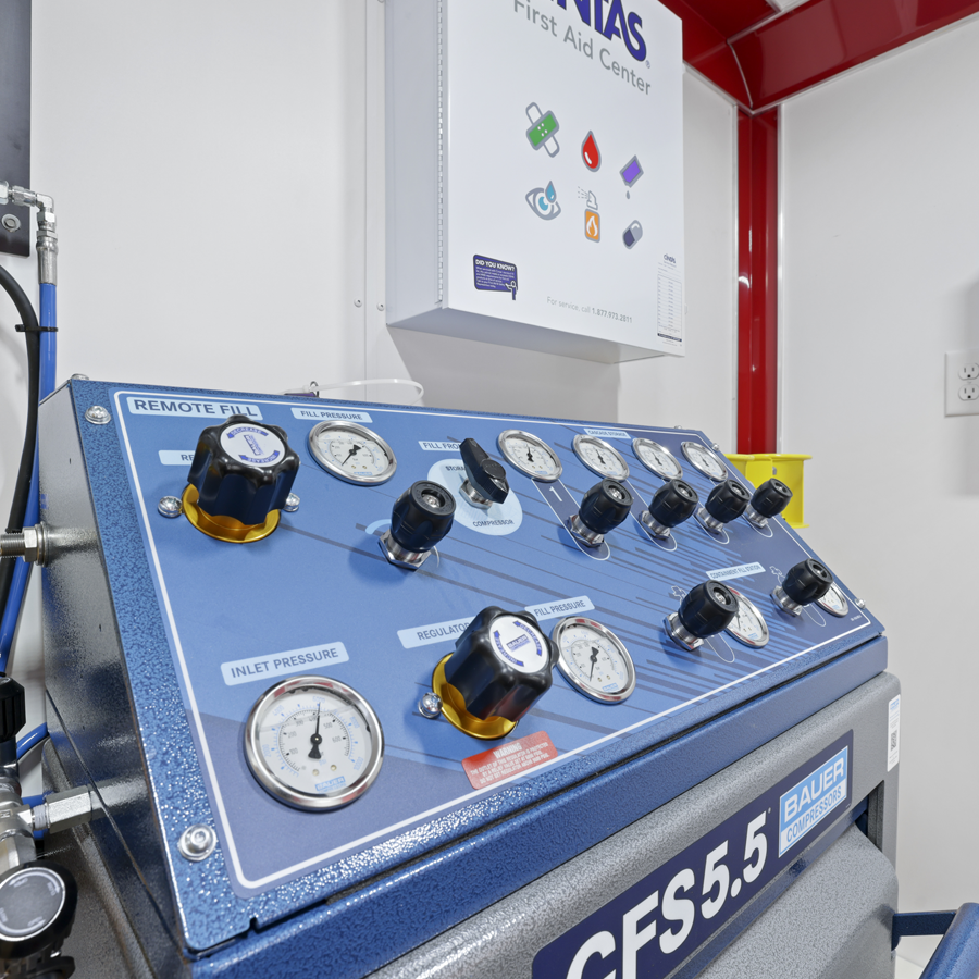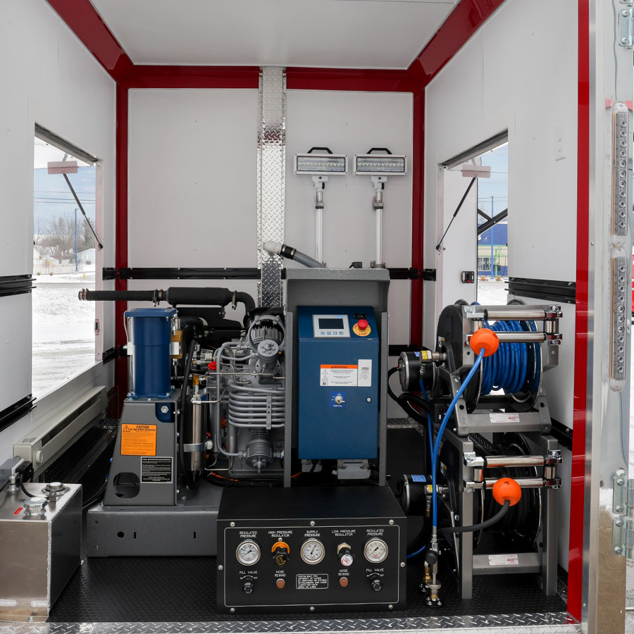 You can easily access the compressor system to check the oil, monitor the gauges, or perform routine maintenance. The CO monitor (front room) fulfills NFPA 1989 regulations.