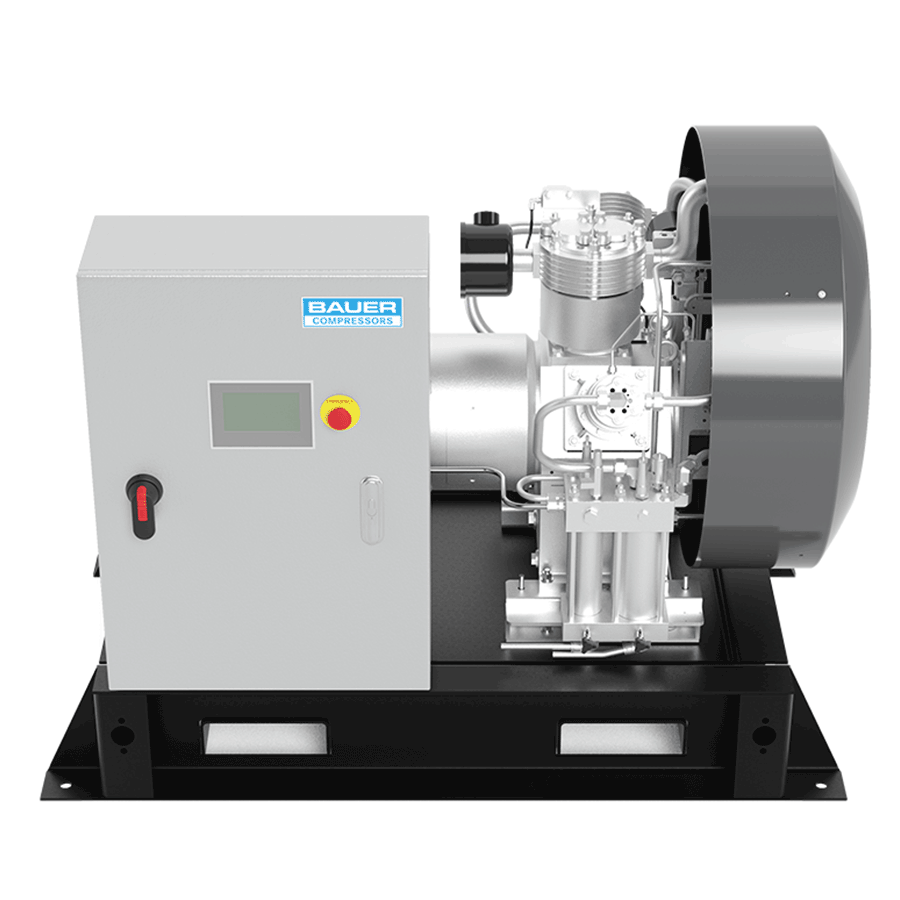Our air-cooled, continuous-duty industrial air compressors range from 2 to 150 HP, providing versatile and efficient options for sustained use. For larger demands, our water-cooled systems deliver continuous-duty performance with power capabilities from 40 to 400 HP. Each BAUER compressor is engineered for seamless integration, ensuring your high-pressure air needs are met with complete, turnkey solutions.
